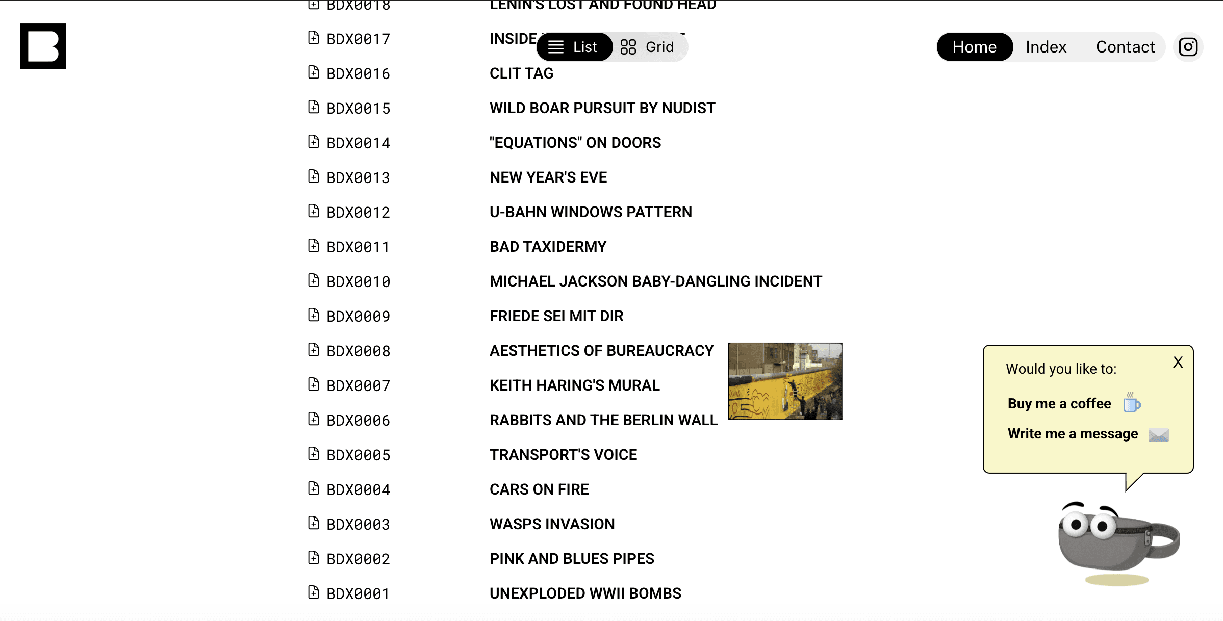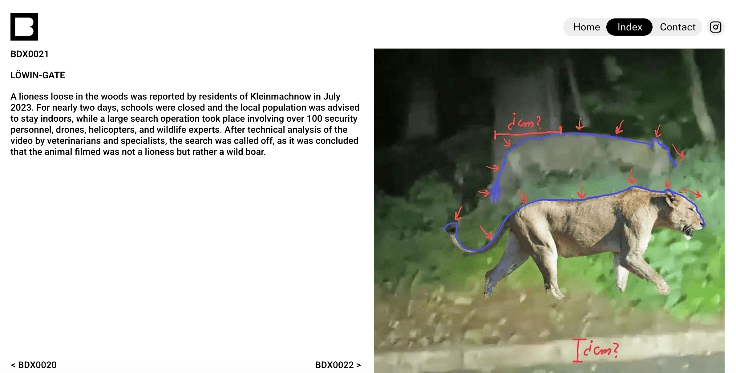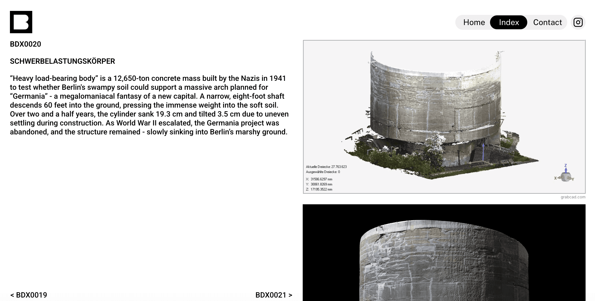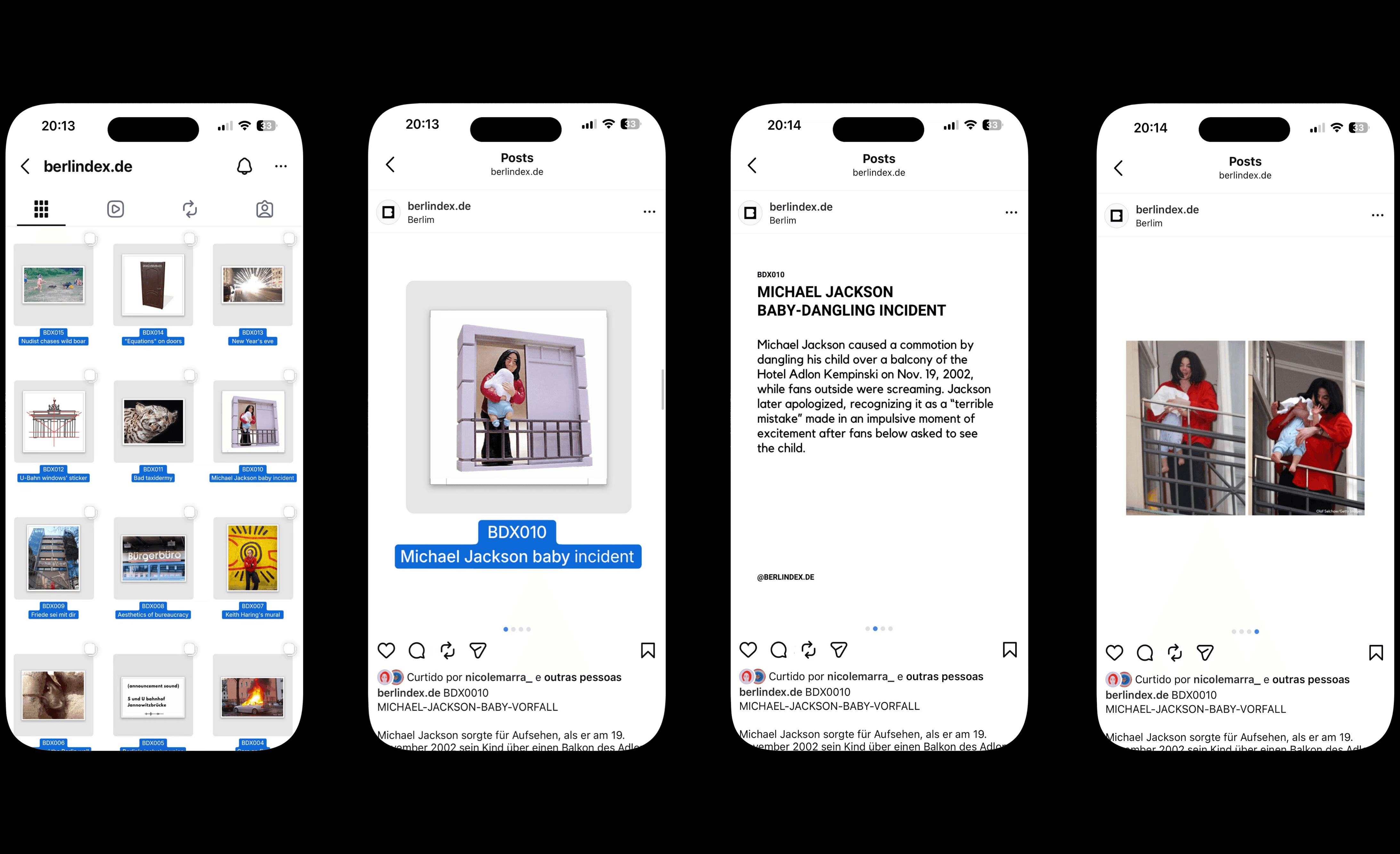 Developed across Instagram (@berlindex.de) and a website (https://berlindex.de), it operates as a long-term way of looking at and organizing the city.